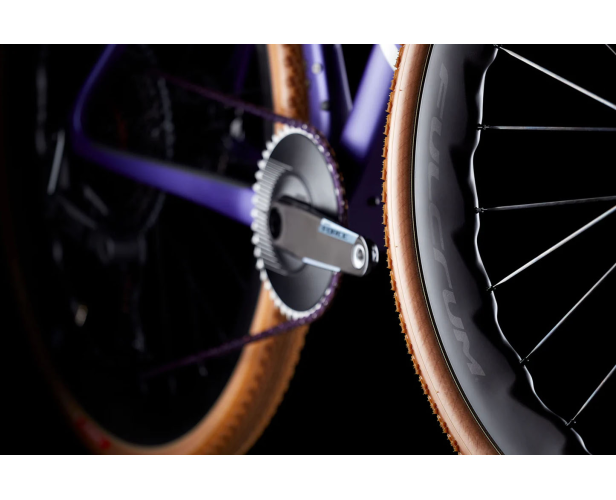 Su set de ruedas FULCRUM con perfil ondulado junto a los exóticos neumáticos VITTORIA T30 Race 45, son ideales para obtener mayor velocidad, aerodinámica y estabilidad en terreno mixto sin olvidar el manillar integrado VISION METRON 5D carbon que aporta rigidez aerodinámica y estética.